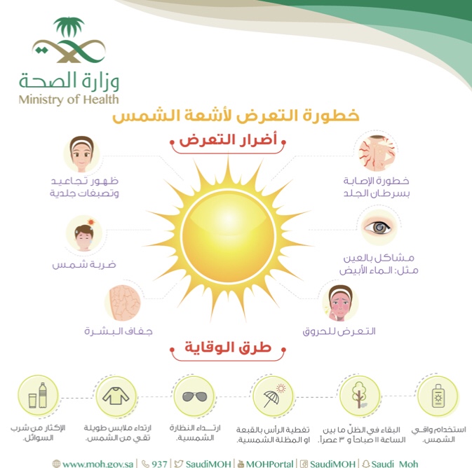• استخدام أدوات الحماية الشخصية في أماكن العمل المعرضة لأشعة الشمس (الخوذة والنظارة والقفاز).